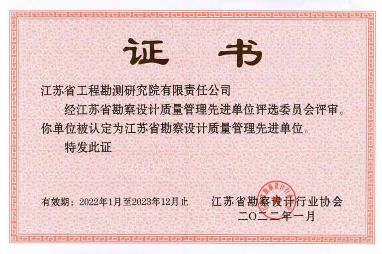 公司再次荣获“江苏省勘察设计质量管理先进...