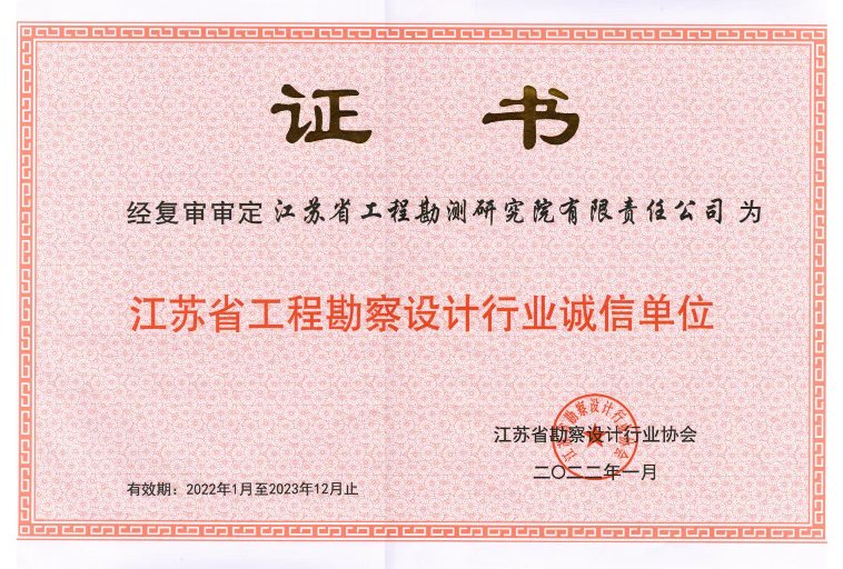 公司再次喜获“江苏省工程勘察设计行业诚信...