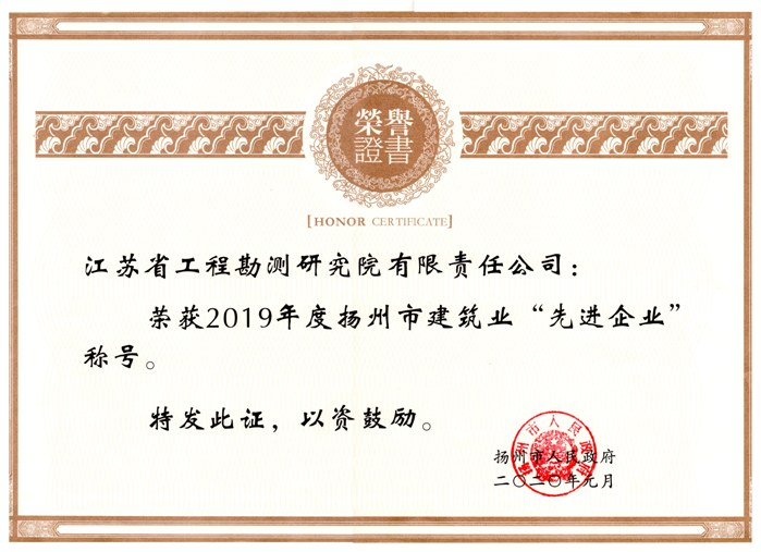 公司被评为2019年度“扬州市建筑业先进...